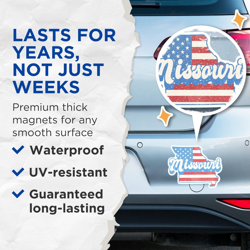 (2 Pack) Missouri State Outline Magnets - MO State Shape with USA Flag - 5" On Longest Side - Premium Magnet - Choose Your State - for Cars, Refrigerators, Toolboxes - Made in USA - MAG1151