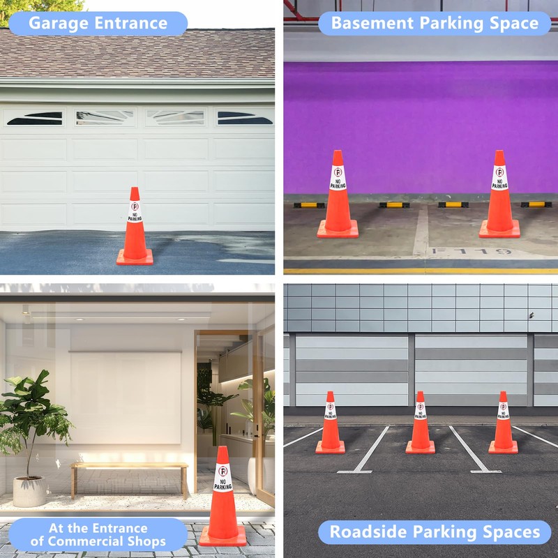 - 【Package Content】 This package includes 2 "no parking" traffic safety collars cones sleeve, measuring 12.2 * 9.84 * 20.47 inches, suitable for standard 18 inch and 28 inch high traffic cones. Please note: traffic cones are not included.