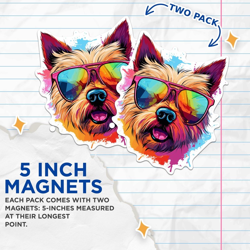 (2 Pack) Norwich Terrier Dog Magnets - Norwich Terrier with Sunglasses - Choose FromOver 100 Dog Breeds - 5" On Longest Side - Premium Magnet - Made in USA - MAG0375