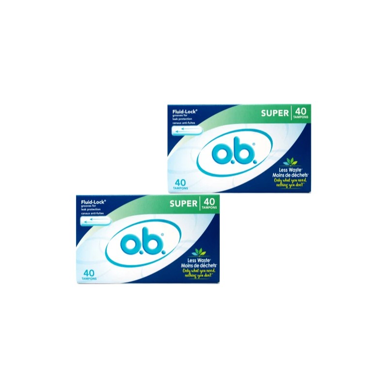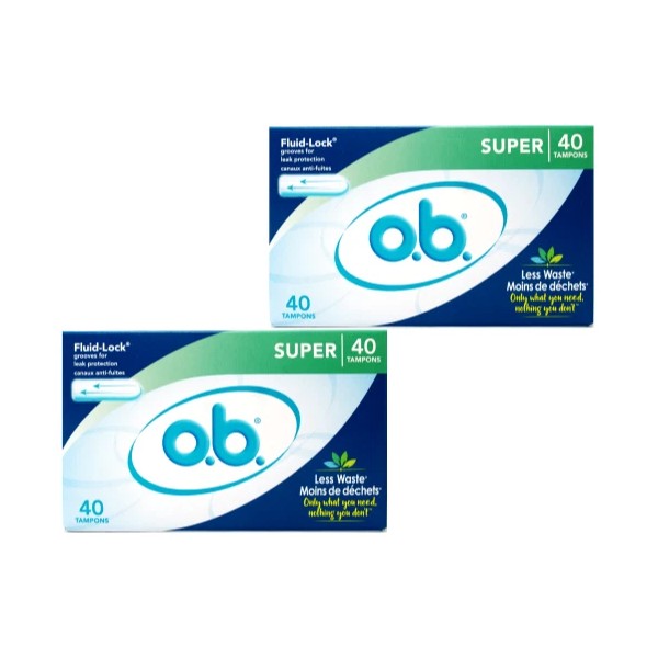 2 Pack O.B. Fluid Lock No Applicator Tampons Super 40 Count Each