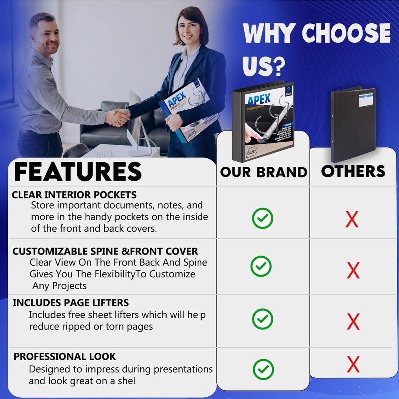 - Customizable Clear View Cover — Keep your most important papers, documents, and forms all in one place. This 3-ring binder is the perfect solution for keeping your important papers organized, with a reinforced design, sturdy binders.