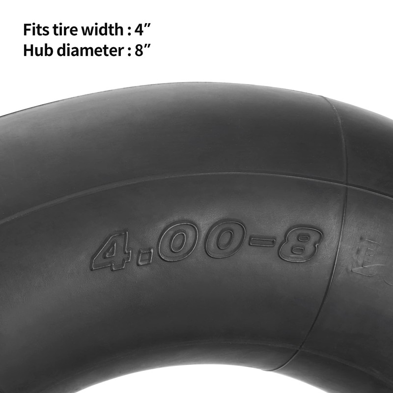- 【Thicknesses】The thicker butyl rubber material also gives this 4.00-8 sack barrow inner tube better stretch and shock absorption for a smoother ride on all surfaces.