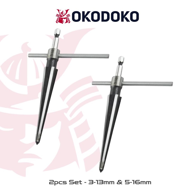 2 Pack of Handheld Tapered Reamers (3-13mm & 5-16mm) 1/4 Inch Hex Shank - T-Handle Taper Reamer Woodwork Set