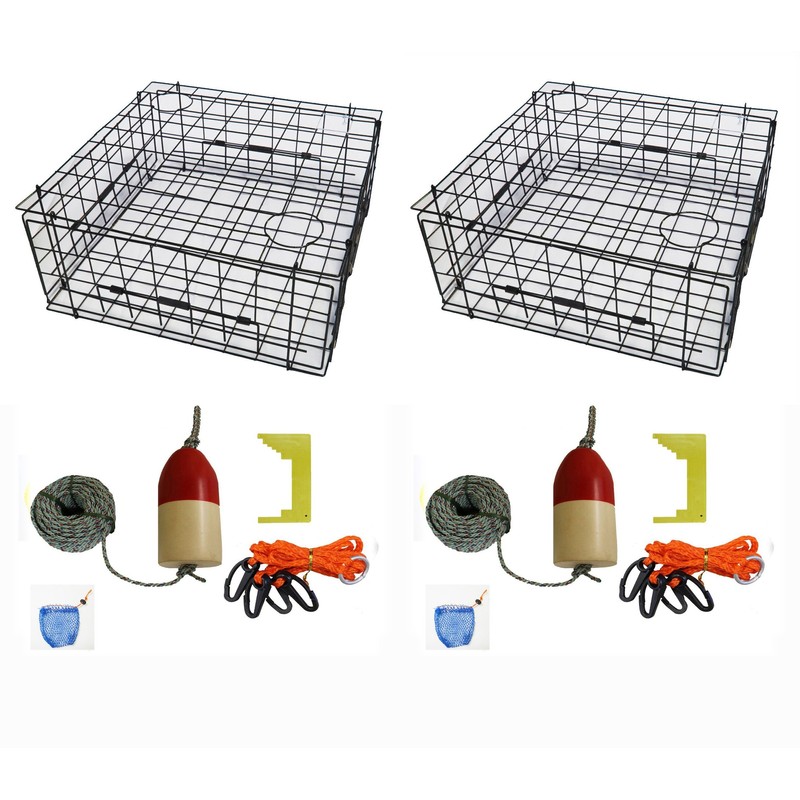 2-Pack of KUFA 28" Vinyl Coated Crab Tra & Accessory Kit (100' Lead Core Rope, Caliper,Harness,Bait Case & 14" Red/White Float) (S70+CAQ3) x2