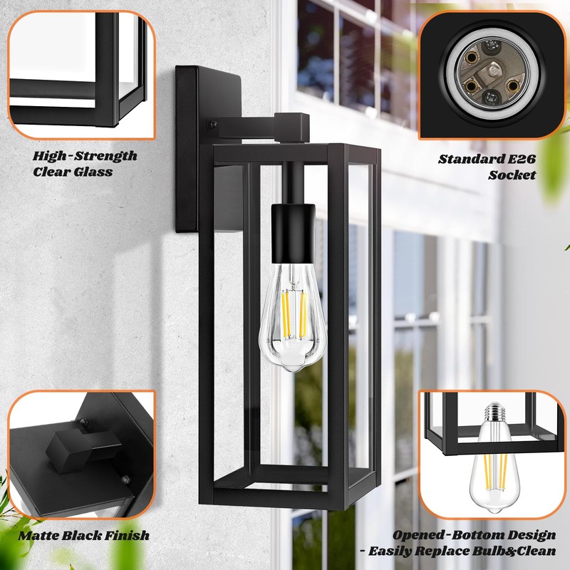 - E26 Socket & Recommended Bulbs: These outdoor lights for house are built in standard E26 socket(100W Max), which are compatible with various bulbs, such as LED, Incandescent or CFL bulbs. You also can use dimmable bulbs and compatible dimmer for these wall lanterns to meet your specific needs(Note: Bulbs and dimmer are NOT included)