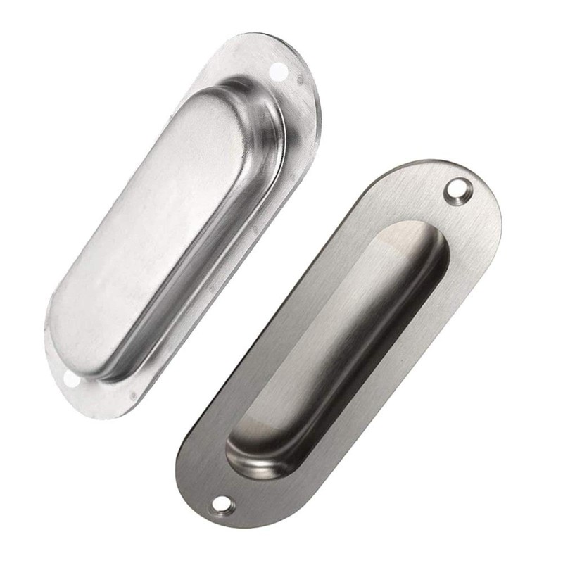 2 Pack Oval Flush Door Pull Handles Handles, Stainless Steel Recessed Finger Pulls Hidden Handle for Sliding Doors Cabinets Drawers - 120 x 40 x 14mm,Flush Handle