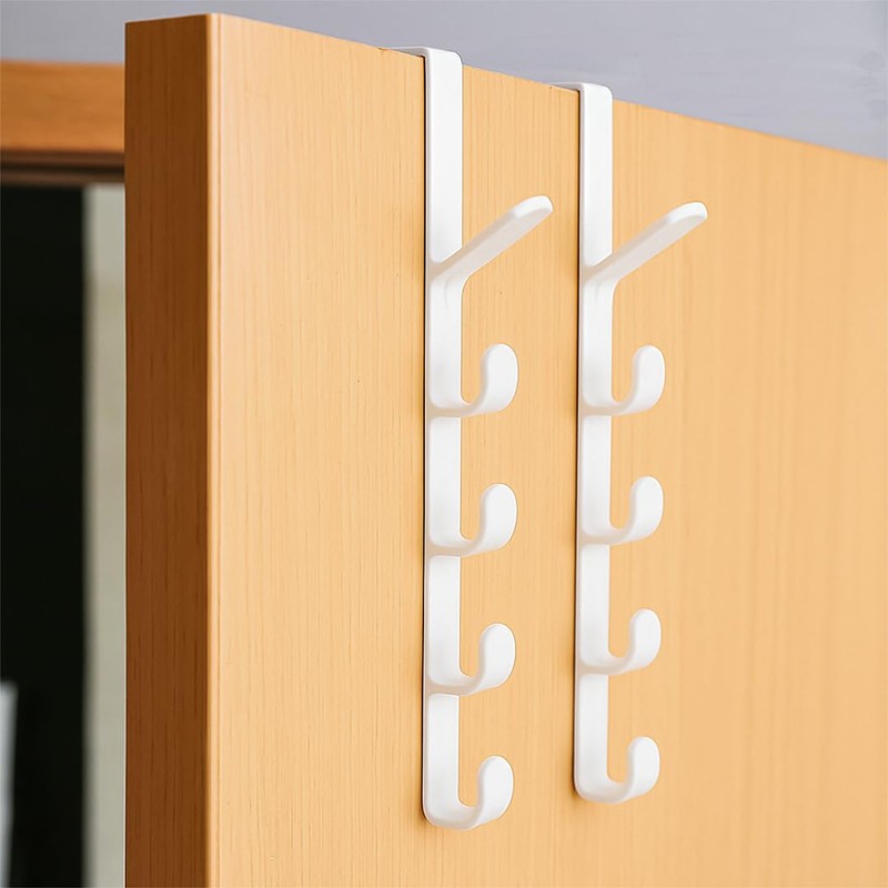 2 Pack - Over Door Hanger | Vertical Over The Door Hooks for Hanging Clothes, Hats, Purse, Towels | Overdoor Hanger Hook Closet Organizers and Storage Hanging Space Saving Storage for Home - White