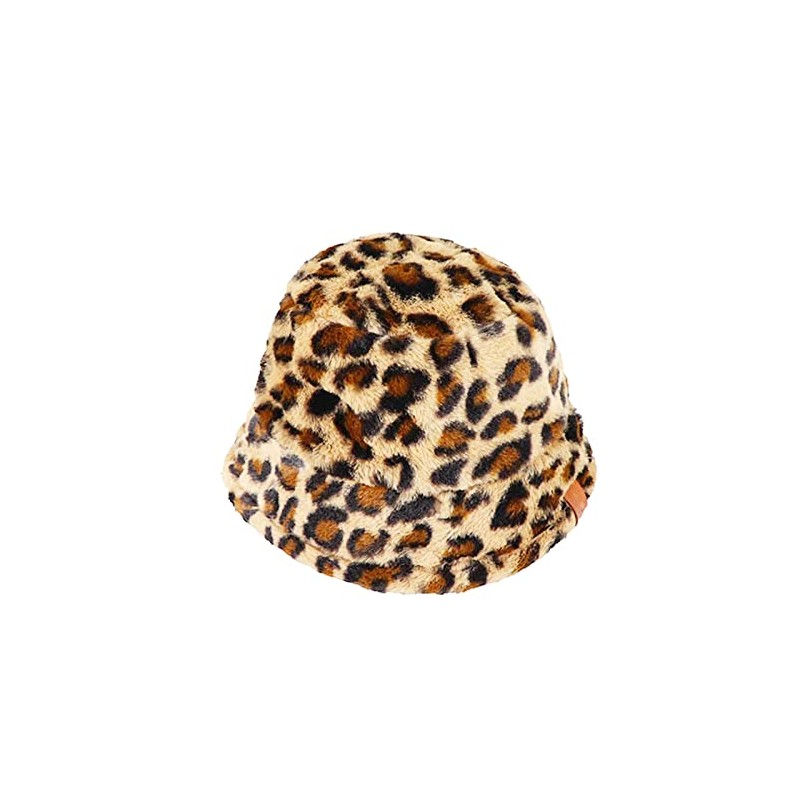 2 Pack Plush Bucket Hats, Fuzzy Warm Faux Fur Fisherman Cap, Fall Winter Hat for Women Teens Girls (Leopard)