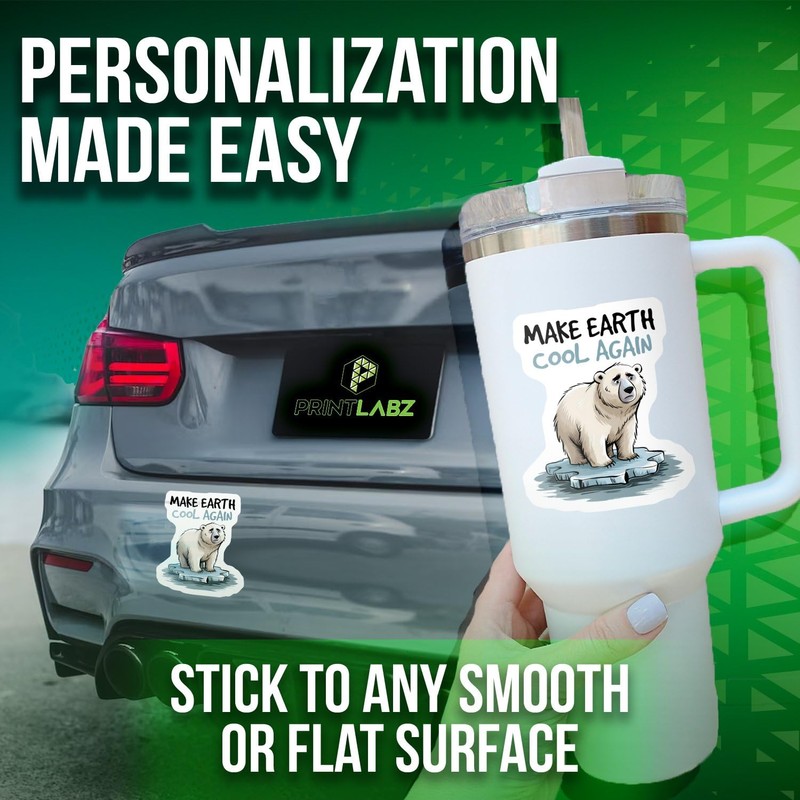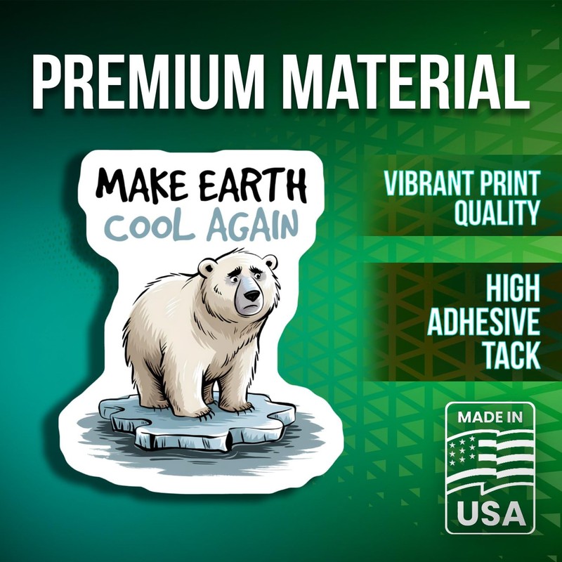 2-Pack Polar Bear Climate Stickers - Make Earth Cool Again - Environmental Awareness Decal - Eco-Friendly Stickers - 5-Inch - PLDFS06253