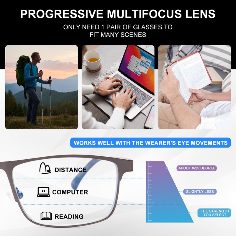 • 【NEWEST PREMIUM MULTIFOCUS PROGRESSIVE LENS】After years of research, Bencaley have upgraded and developed the multi-focal lenses. Say goodbye to traditional dizzy and blurry muti-focal lenses. The viexing area has expanded 30% compared the traditional.