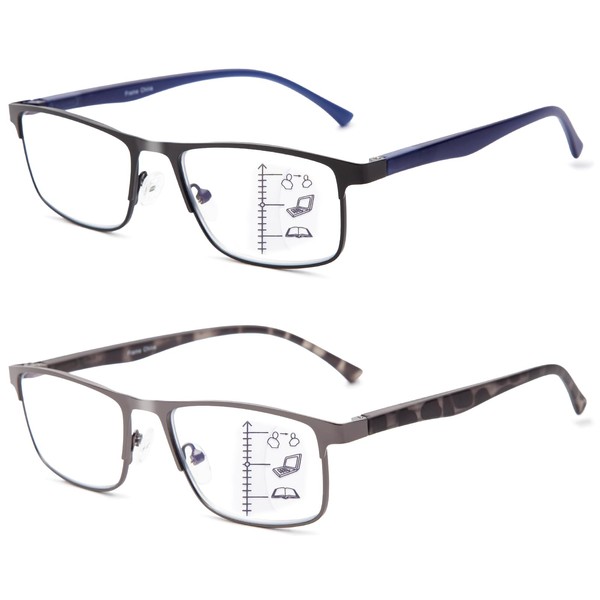 2 Pack Progressive Multifocus Reading Glasses Men - Metal Frame Blue Light Bl...