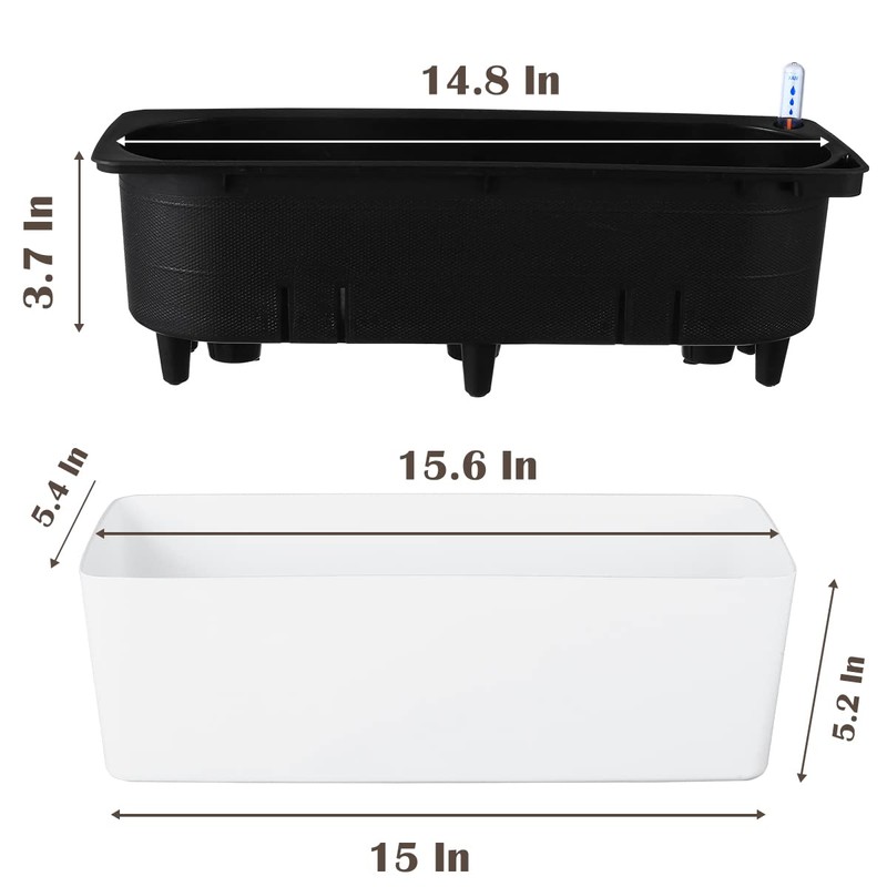- Large Size and Deep Rectangular Planter: The rectangular planter is 15.6 in x 5.4 in, which is big enough for most vegetables, herbs, flowers and so on. They are also deep enough to let the plants have a good root system.