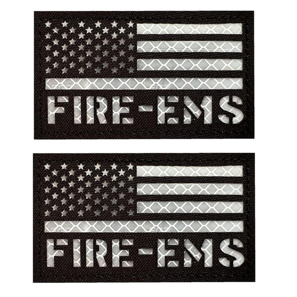 2 Pack Reflective EMS Fire Rescue Patch with Hook Back for Service Harness Tactical Vest Patch (Black-Red)