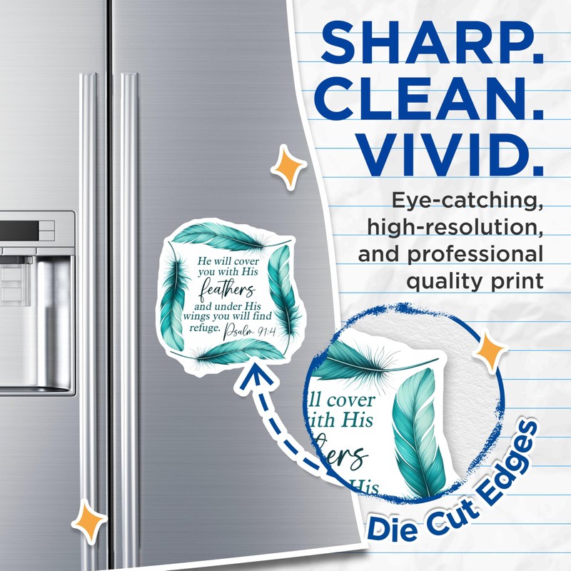 (2 Pack) Religious Decorative Magnets - Bible Verse Psalm 91:4 - Inspirational Quotes for Home - Motivational Feather Artwork - 5" On Longest Side - for Cars, Fridges, Toolboxes - Made in USA - MAG755