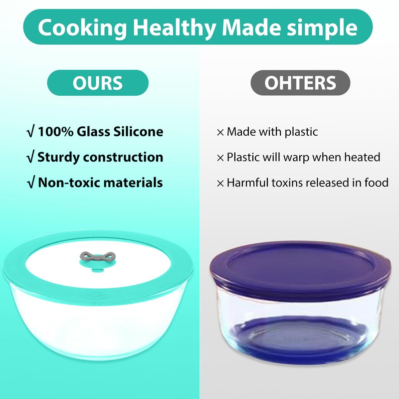 - Creative Seal Cover: Silicone and glass combination cover for 4.6-4.8 inch glass round storage dish bowls, fit for Pyrex 7200-PC 2 Cup bowl. Please check the size carefully before buying.