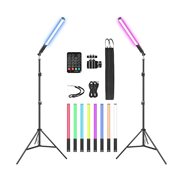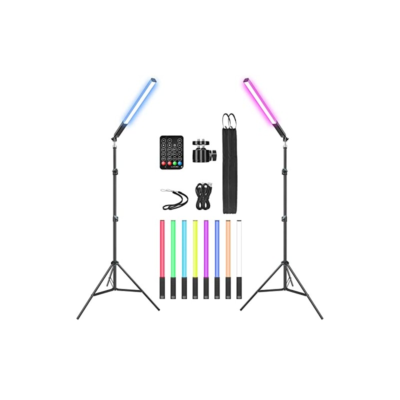 2 Pack RGB LED Video Light Wand Stick, LUXCEO Photography Studio Lighting Kits with 29" to 81" Tripod & Remote Control, Dimmable Photography Light Wand 36 Colors 3000K-6000K