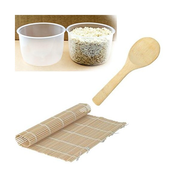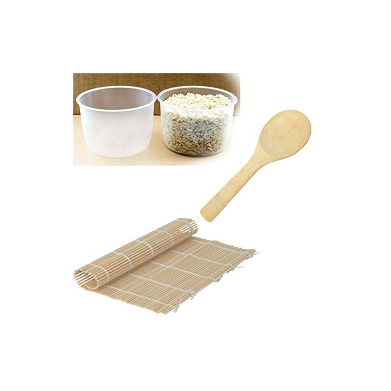 - 2 Rice Measuring Cups + 1 Rice Paddle + 1 Sushi Rolling Mat - All items are dishwasher safe!