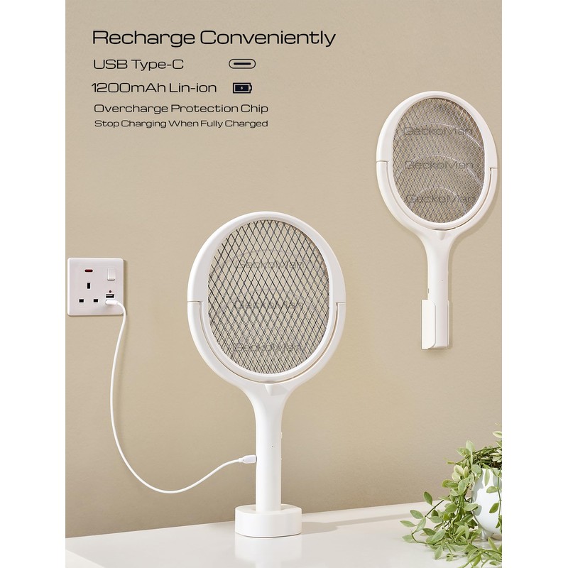 - 【🏠 Handheld, Standing, or Wall Mount】Adapt to any bug-fighting scenario with the versatile electric fly swatter. Hold it handheld for on-the-go bug-catching, stand it to attract insects, or mount it on the wall for tidy storage or as an efficient indoor bug zapper for your home.