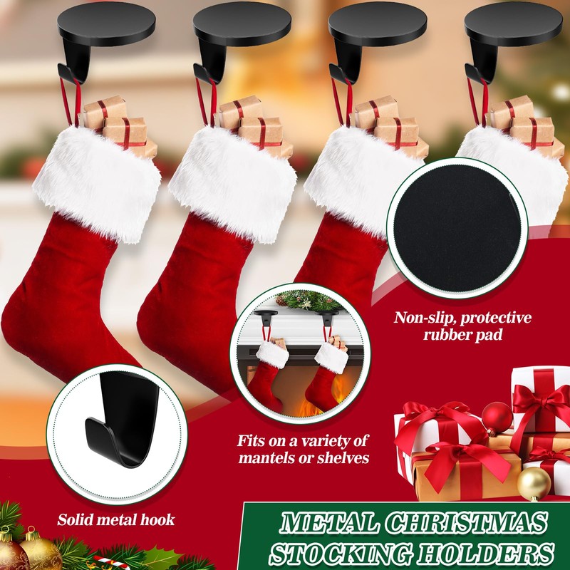 - Heavy-Duty and Durable: the Christmas stocking hooks for fireplace weight is about 400g; The hook is heavy enough to hold stockings and gifts without falling off, perfect for hanging stockings, garlands, wreaths, or string lights; The soft fabric felt anti-slip layer on the base ensures no scratches are left on your mantel or table