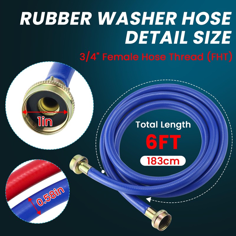 - 【6FT Washer Hoses】This 6ft premium quality washer machine hose is made of high-grade rubber, making it durable,long-lasting and not easy to leaks and breakages , making it the perfect size for most washing machine installations