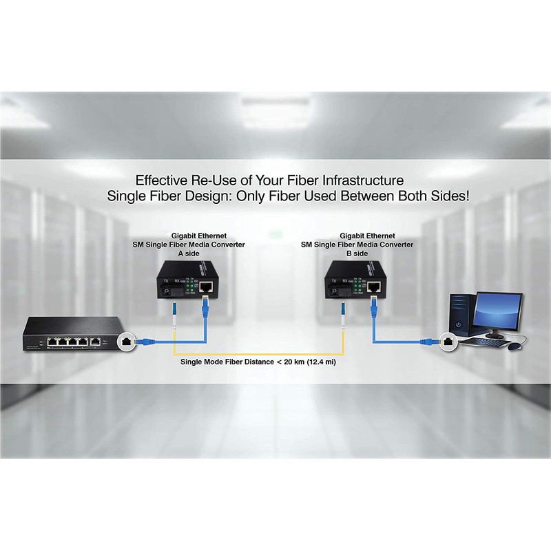 - Built-in Single-mode Fiber Module 1310-nm with Single SC ports, and extend your Gigabit or Fast Ethernet Network up to 20 km (12.42 miles) with ease,Its compact modular design facilitates deployment in a narrow desktop location to save space.