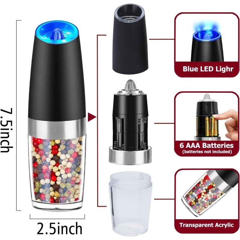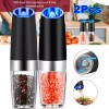 2 Pack Set of Gravity Electric Pepper and Salt Grinder Set Adjustable Coarseness