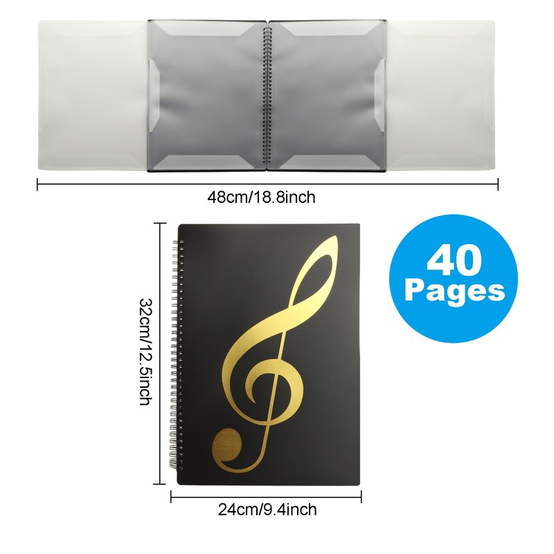 - Large Capacity: This sheet music organizer has 10 plastic sleeves, allowing for double-sided storage of sheet music, holding up to 40 sheets of music paper.