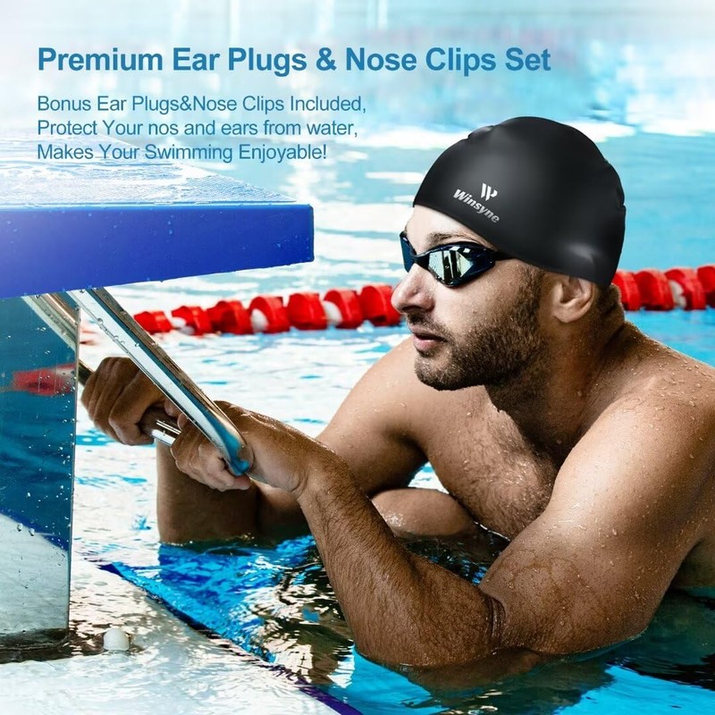 - ●High Quality Silicone●: Winsyne adult swim caps are made with sports-grade silicone, it features odorless, non-toxic and allergy-free to guarantee safety. It is super stretchy and tear-resistant, no deformation after repeated use, which makes the swim cap easy to put on without snagging hair. Note: Please avoid sharp objects, such fingernail and hairpin.