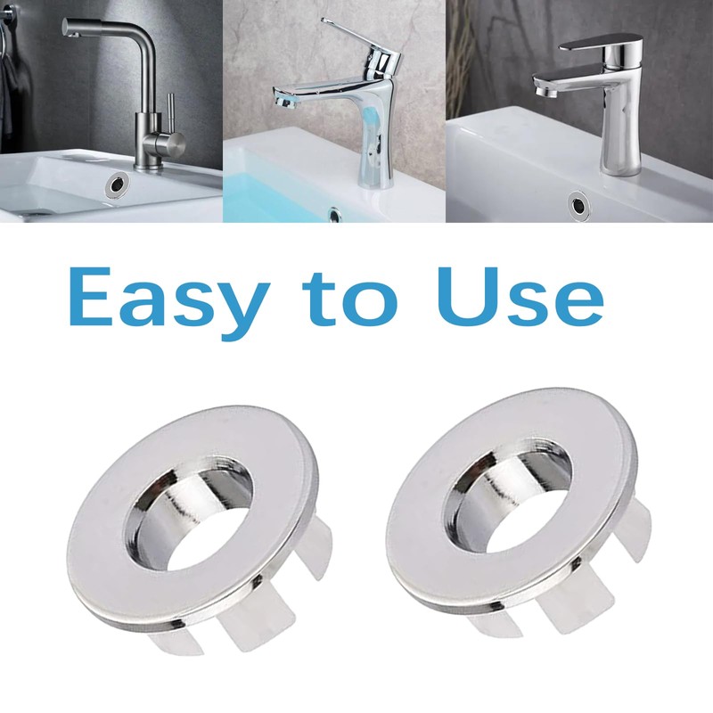 2 Pack silvery Kitchen Bathroom Sink Basin Vanity Sink Trim Overflow Cover, Metal Bathroom Wash Basin Decoration Overflow Cover Insertion Hole