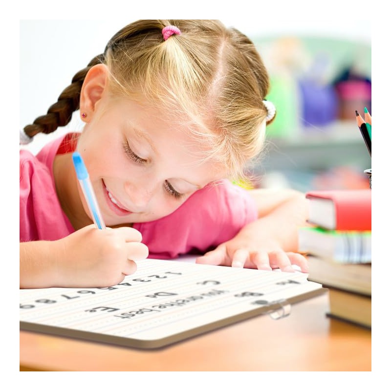- The personal dry erase board has two sides, one side is lined, the other side is blank white board. letters at lined side and draw on the blank white board.It allow to practice standard handwriting and improve their creative thinking
