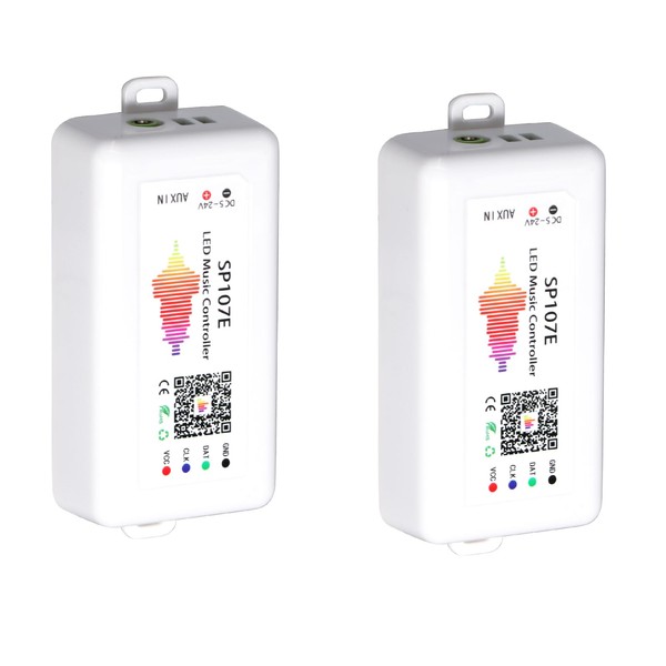 2 Pack SP107E LED Controller –Music Sync for WS2812B/Ws2811/SK6812 IC Strips & LED Pixel Matrix Panel, Smart App Control, 16 Million Colors, Commercial/Home Lighting