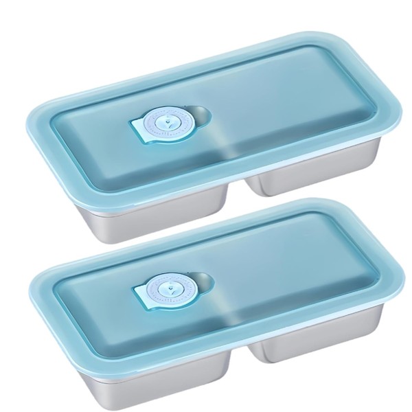 2-Pack Stainless Steel Snack Containers | 2-Compartment Bento Box with Clear Lid | Travel & Camping Food Storage Solution
