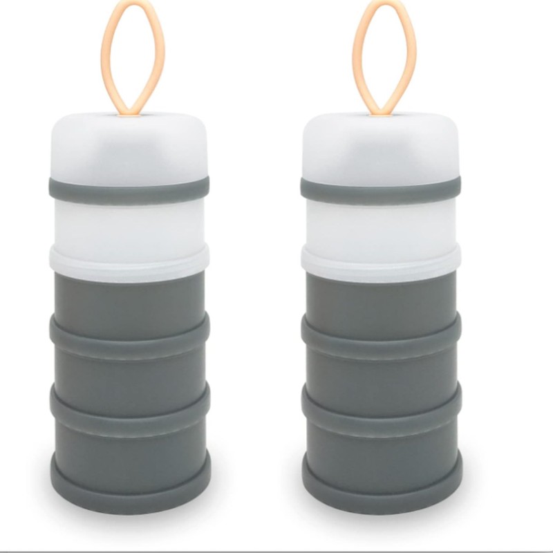 2-pack storage container, 4-layer stackable leak proof formula dispenser, portable travel container (gray)