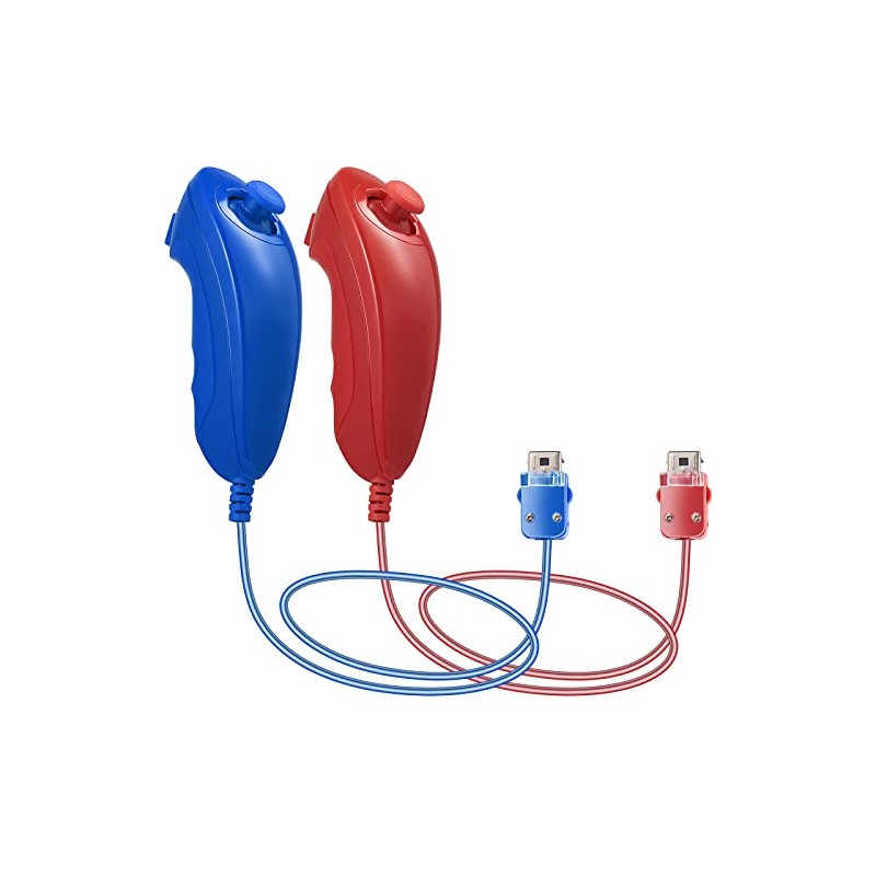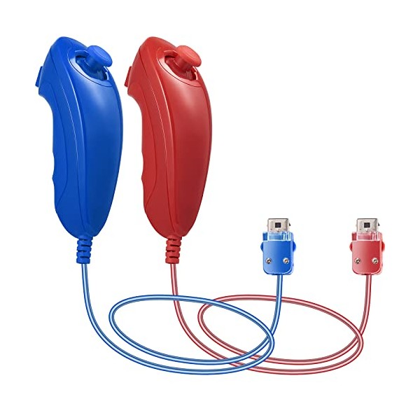 2 Pack suily Nunchuck Controller Replacement Compatible for Wii Remote (Blue + Red)
