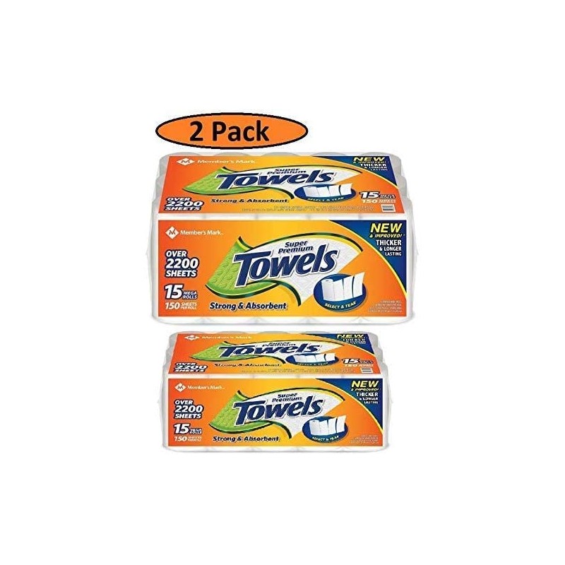 2 Pack Super Premium Paper Towels (15 rolls, 150 sheets per roll)