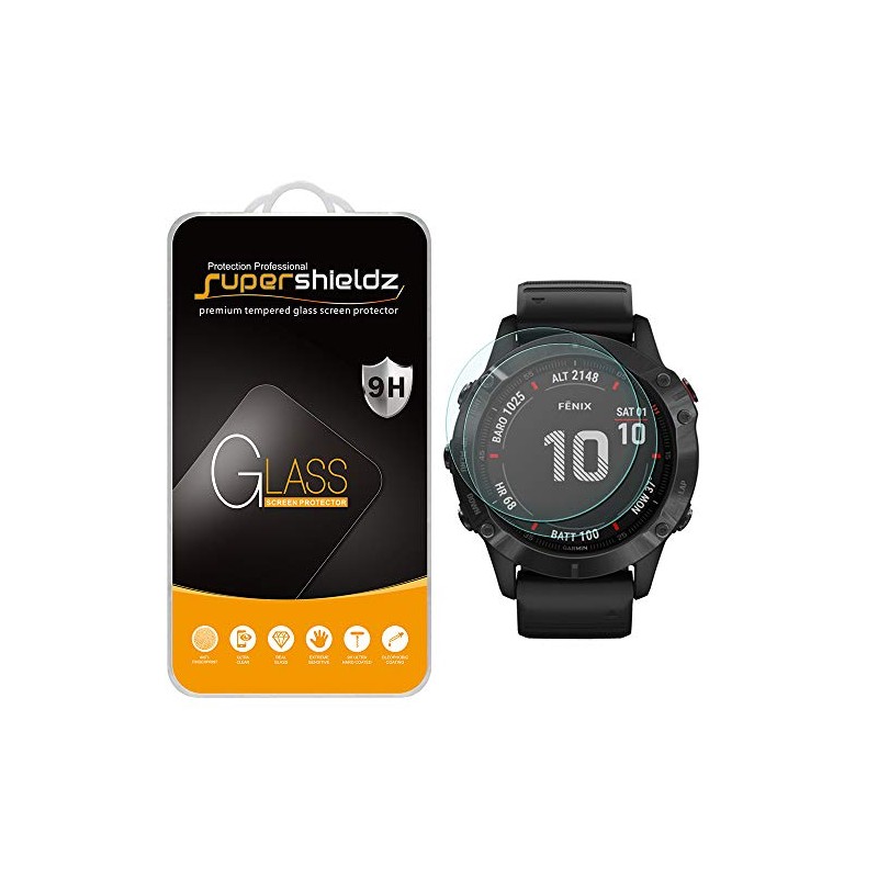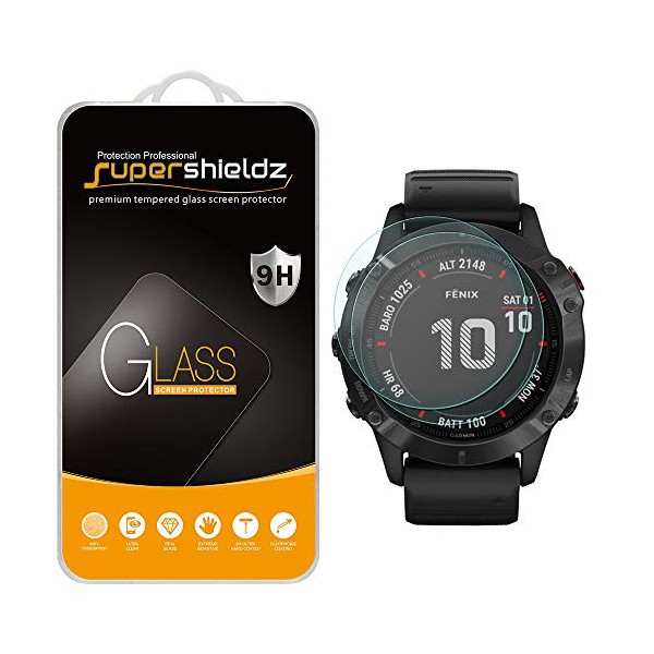 (2 Pack) Supershieldz Designed for Garmin Fenix 6 and Fenix 6 Pro Tempered Glass Screen Protector, Anti Scratch, Bubble Free