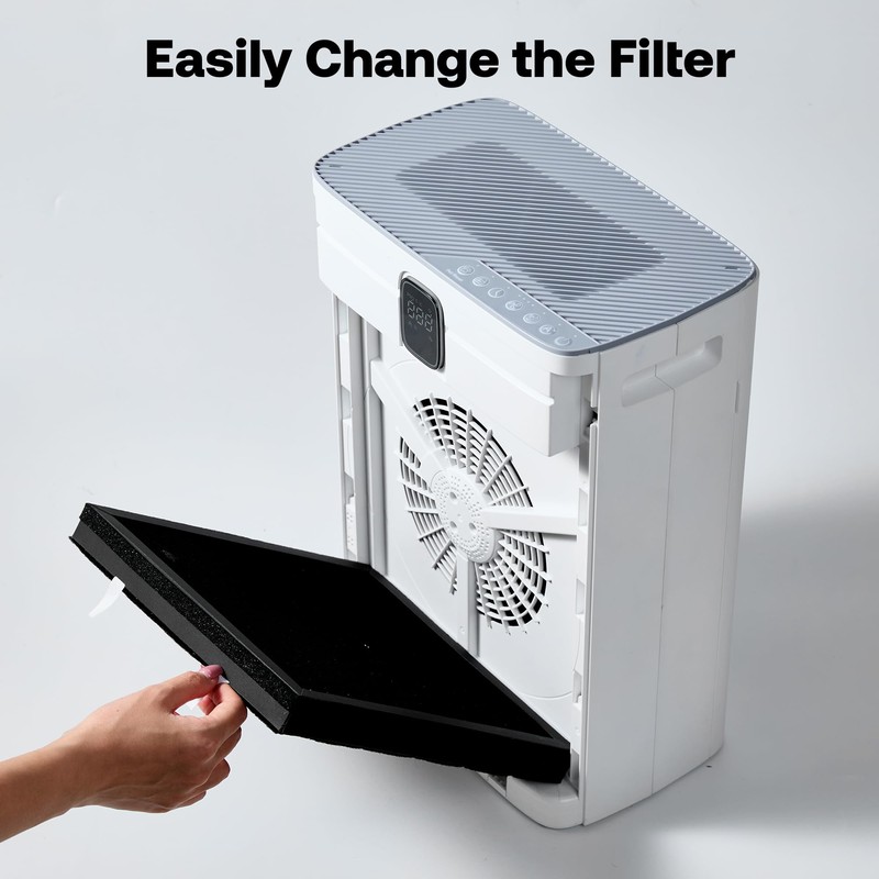 - Washable Filter: Our three-stage filter offers powerful filtering. It effectively traps particles like smoke, pollen, pet dander, and hair, with an efficiency of up to 99.97%. Cleaning the pre-filter with water or a vacuum extends the lifespan of the H13 HEPA filter, saving filter replacement costs.