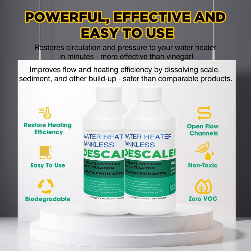 • POWERFUL DESCALING SOLUTION: A descaler for tankless water heaters is not only very effective at flushing out unwanted scale buildup from your equipment, but it is also very safe. It is safe to handle and does not release any volatile organic compounds.