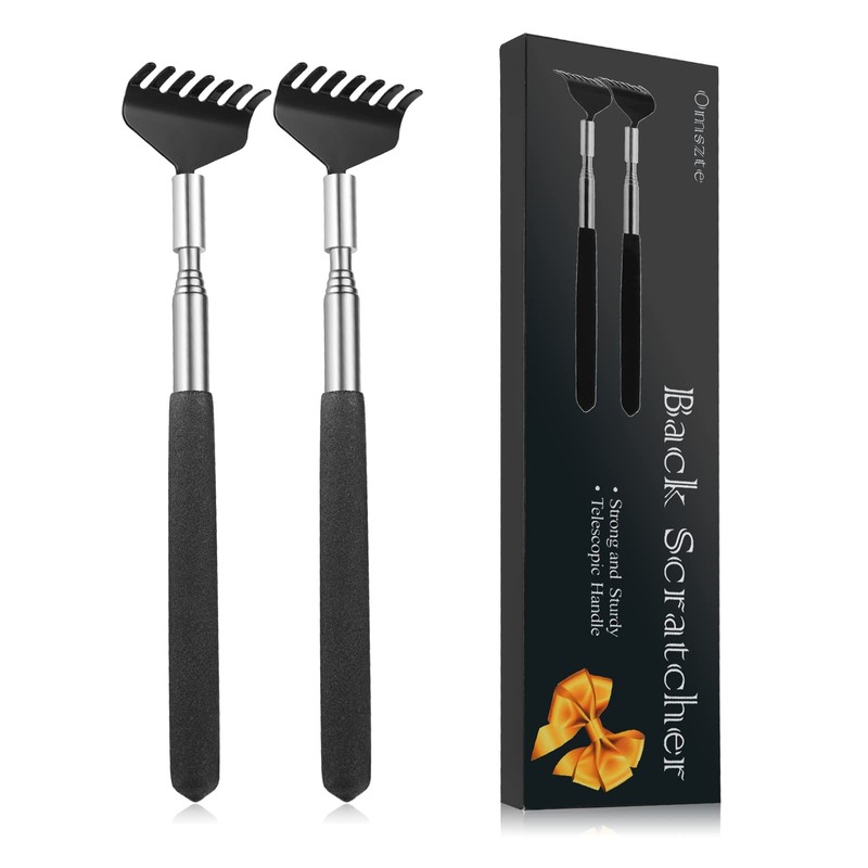 2 Pack Telescoping Back Scratcher, Omszte Portable Extendable Stainless Steel Massage Tool for Eliminating Back Itching(Black)