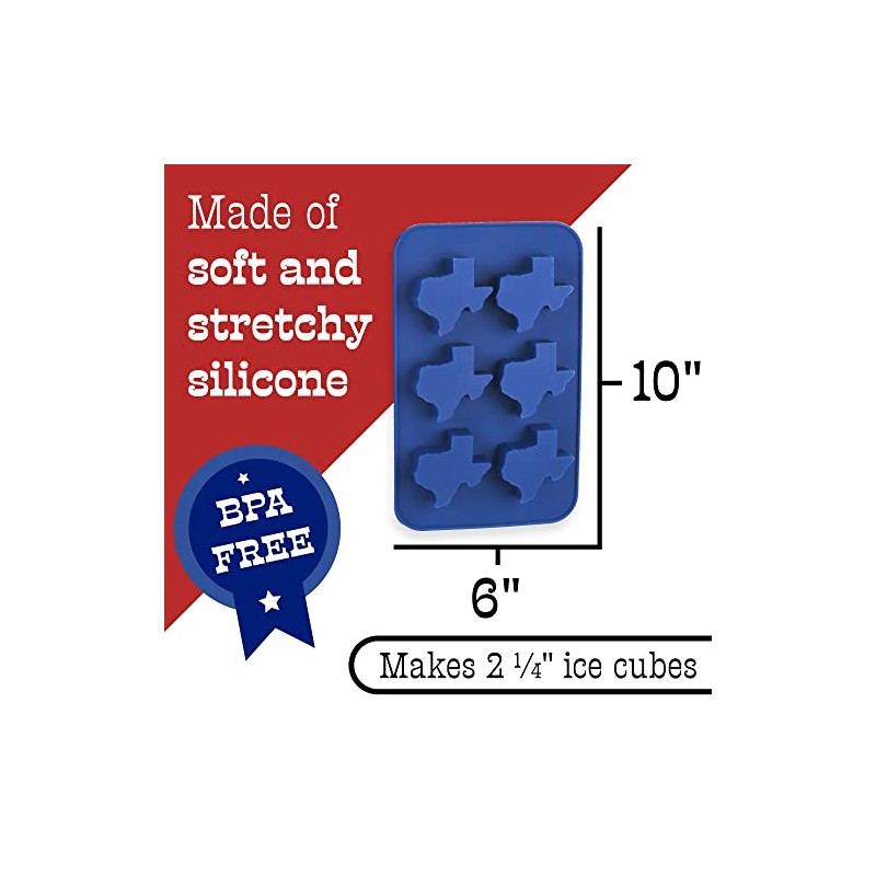 [2-Pack] Texas Ice Cube Tray for Proud Texans - Texas Shaped Ice Cube Tray for Parties - Silicone Texas Ice Cube Mold for Cool Novelty Gifts - Texas America Ice Cube Tray for 6 Cubes - 12 Cubes Total