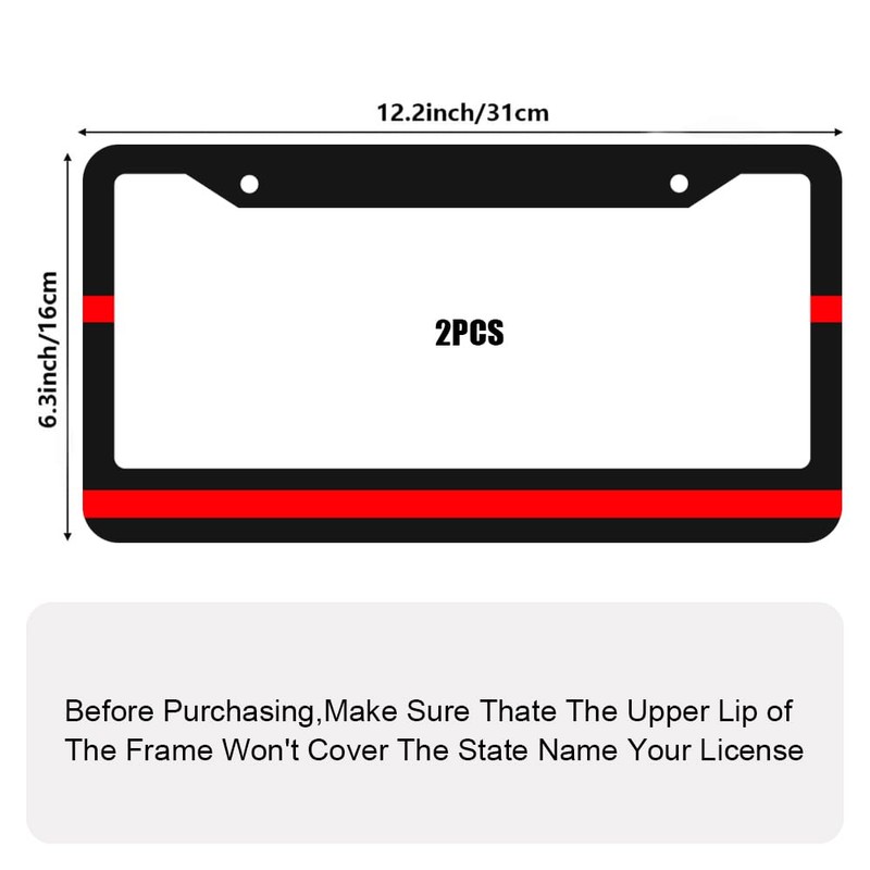 2 Pack Thin Red Line License Plate Frames - Black Thin Red Lines Aluminum Holder Cover with Stainless Steel Screws Caps License Plate Frame Fits All License Plates in Canada. (Red line)