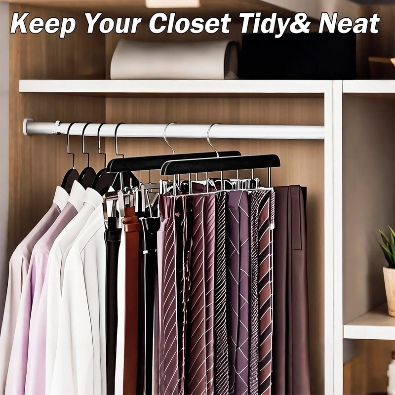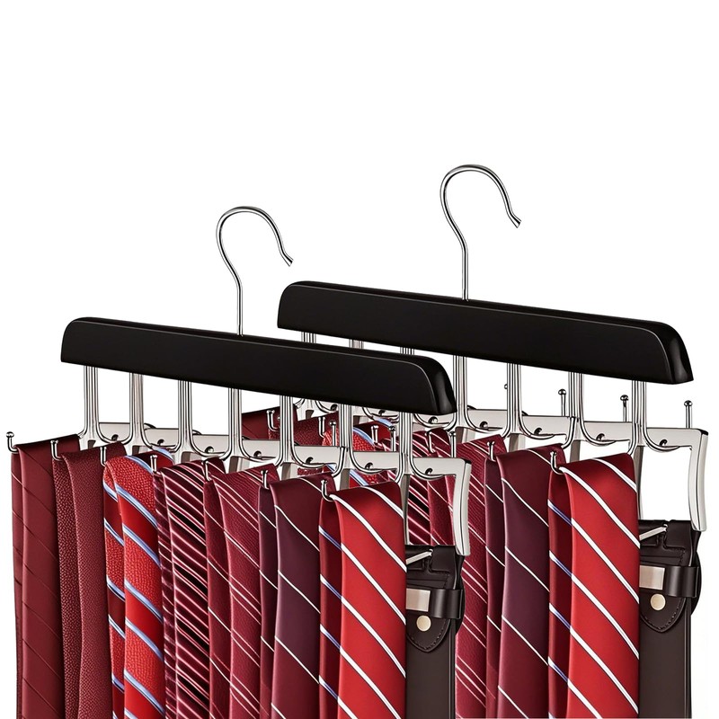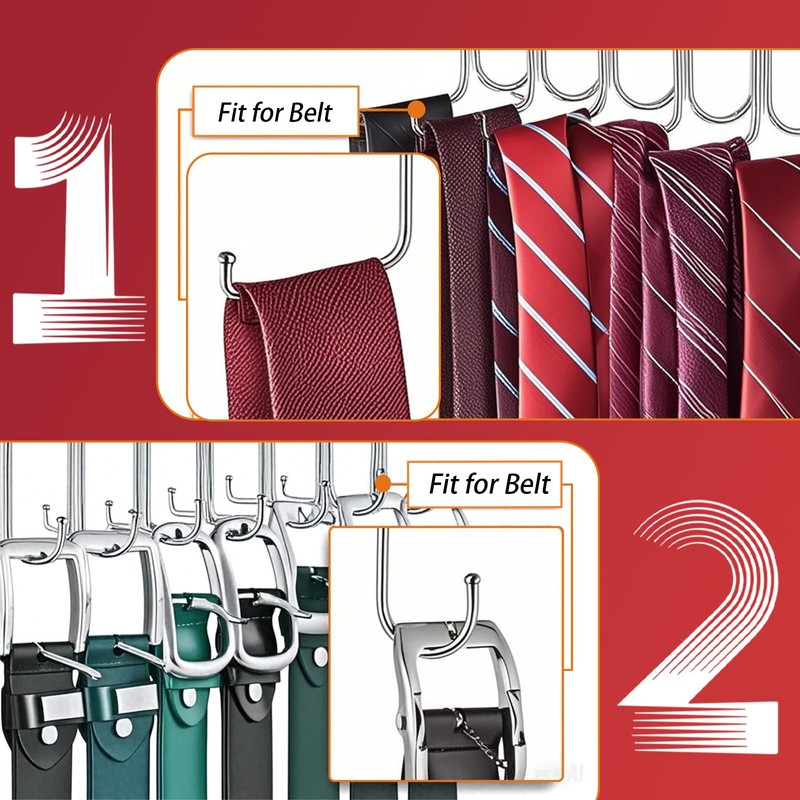 - Large Capacity Tie Organizer:A tie hanger is equipped with 20 rotatable hooks. When unfolded, the tie can be hung on an alloy balance stand for easy access, while also avoiding wrinkles, tangles, and creases on the tie and belt.