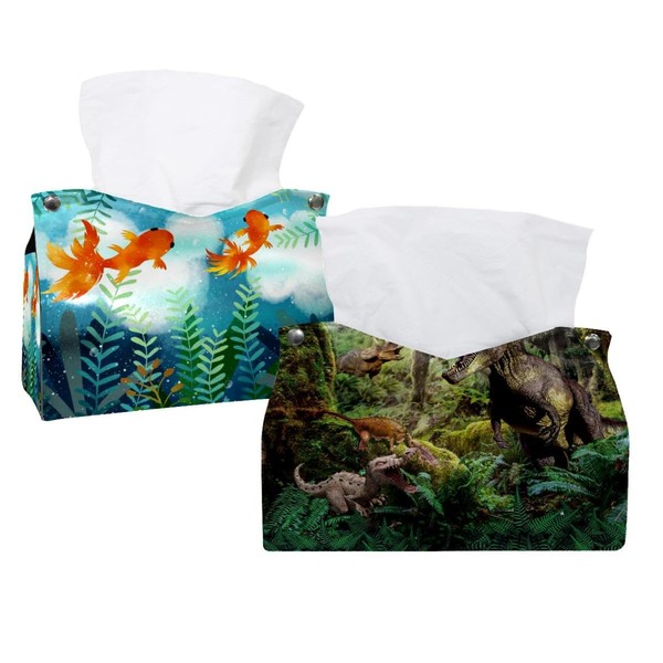 2 Pack Tissue Box Cover Holder, Dinosaurs in Forest Rectangle Leather Tissue Case, Decorative Organizer for Tabletop, Bathroom, Car, Office