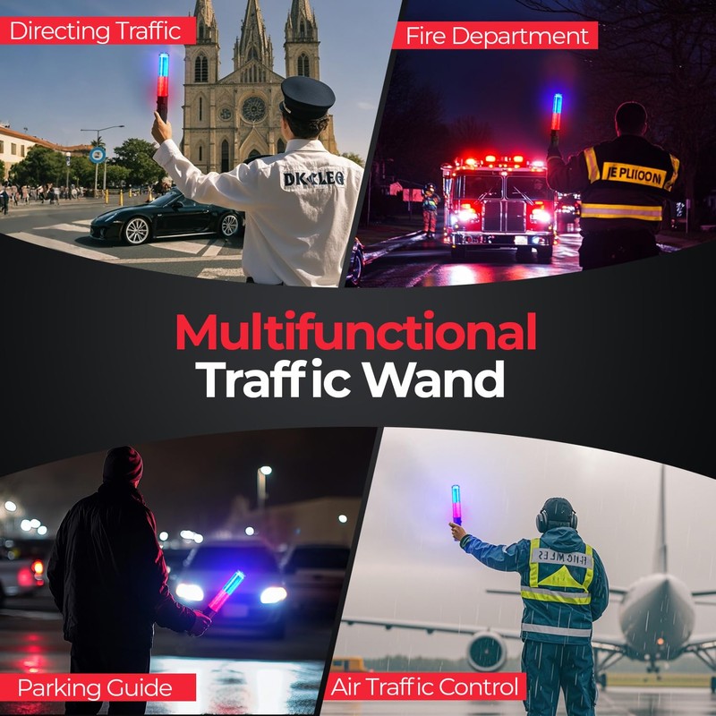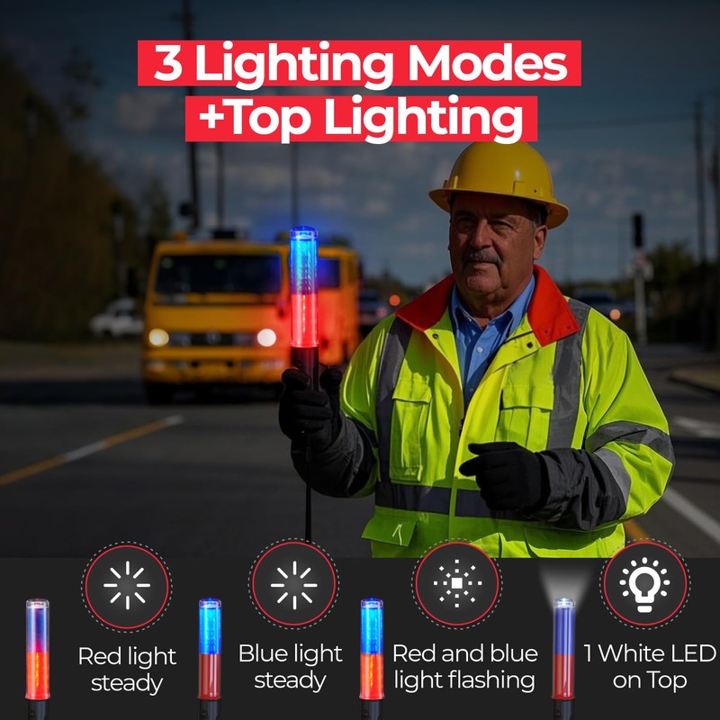 - 4 Flashing Options: There are 4 light modes on the traffic directing wand, solid red light, solid blue light, red and blue light flashing plus 1 White LED on Top which is bright and easy for drivers to follow, it has a strong warning effect on rainy, foggy, and snowy days