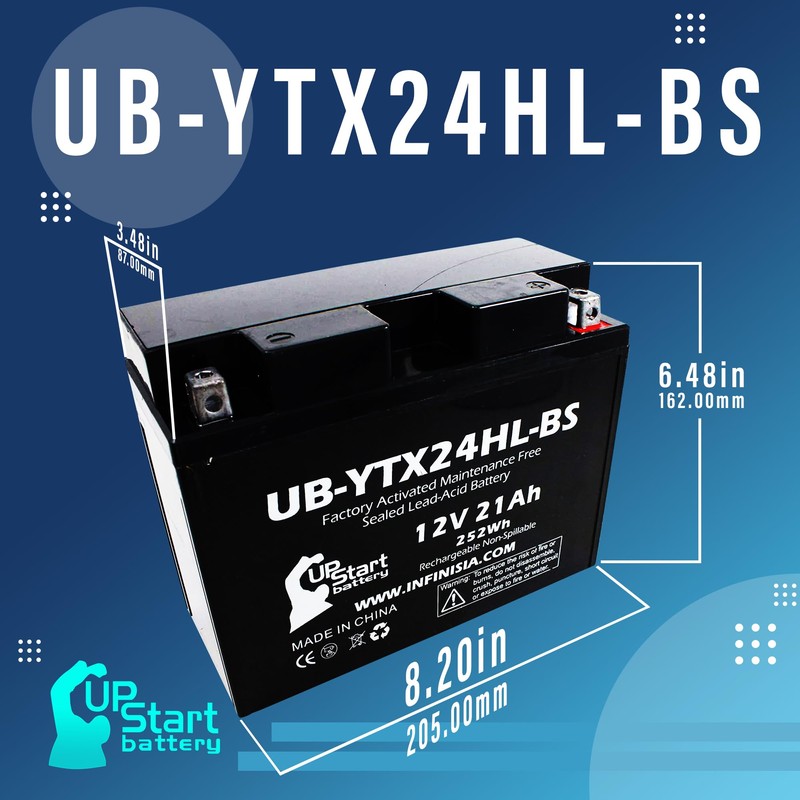 - UB-YTX24HL-BS Battery Replacement for 1985 Polaris All Electric Start Kits Snowmobile - Factory Activated, Maintenance Free, Motorcycle Battery - 12V, 21AH, UpStart Battery Brand; Quantity: 2