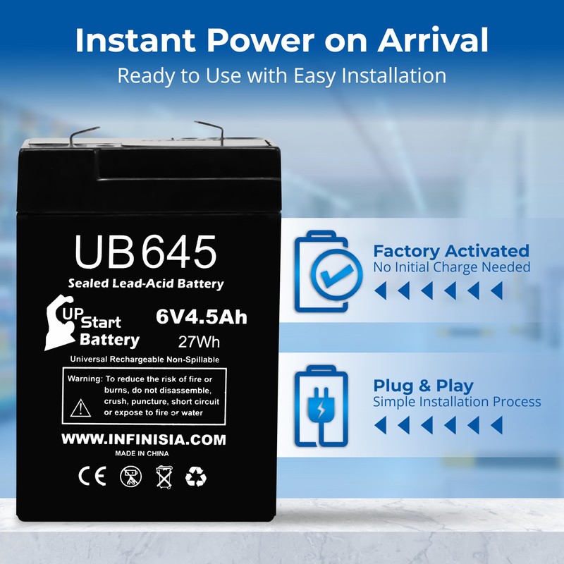 - πππππ-πππππ & πππ π ππππππ - Sealed lead-acid construction ensures leak resistance and safe indoor use, even in kids' ride-on cars, with accessible battery housing. Works effectively as a 6v 4.5 ah rechargeable battery.