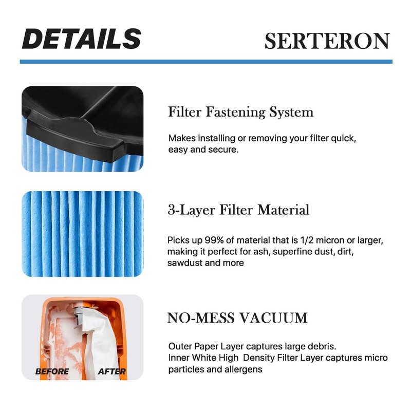 - Sturdy 3 layer material helps collect most everyday dirt, drywall dust, cement dust and sawdust with this Replacement filter for Ridgid Wet/Dry Shop Vac Vacuums