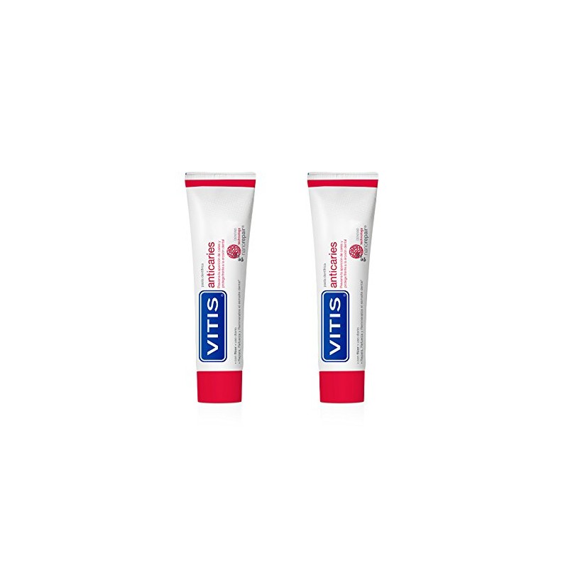 VITIS anticaries is the first anticaries toothpaste to protect and repair enamel deep down, thanks to its hydroxyapatite nanoparticles, natural element of teeth, which combine and integrate with tooth enamel. Its formula also includes fluoride and xylitol for maximum caries prevention. Thanks to DENTAID Nanorepair Technology: · It ensures full integration of hydroxyapatite nanoparticles with tooth enamel* to therefore: o Repair grooves, cracks and imperfections of the enamel surface, deep down. o Strengthen demineralised enamel. · Forms a protective coating that is resistant to the attack by acids present in food, which erode and weaken tooth enamel day after day. · When combined with fluoride, fluorapatite crystals form, which are less soluble in acids than hydroxyapatite, making teeth more resistant to caries formation. VITIS anticaries, with hydroxyapatite nanoparticles, fluoride and xylitol, is the only toothpaste with 3 specific mechanisms of action for the prevention of tooth decay and protection against dental erosion. VITIS anticaries: -Repairs damaged enamel, deep down. -Forms a protective coating that is resistant to erosion. -Strengthens and fortifies enamel -Remineralises enamel VITIS anticaries toothpaste does not contain gluten, and is therefore suitable for people with celiac disease. * Proven efficacy, DENTAID Research Center, 2014.