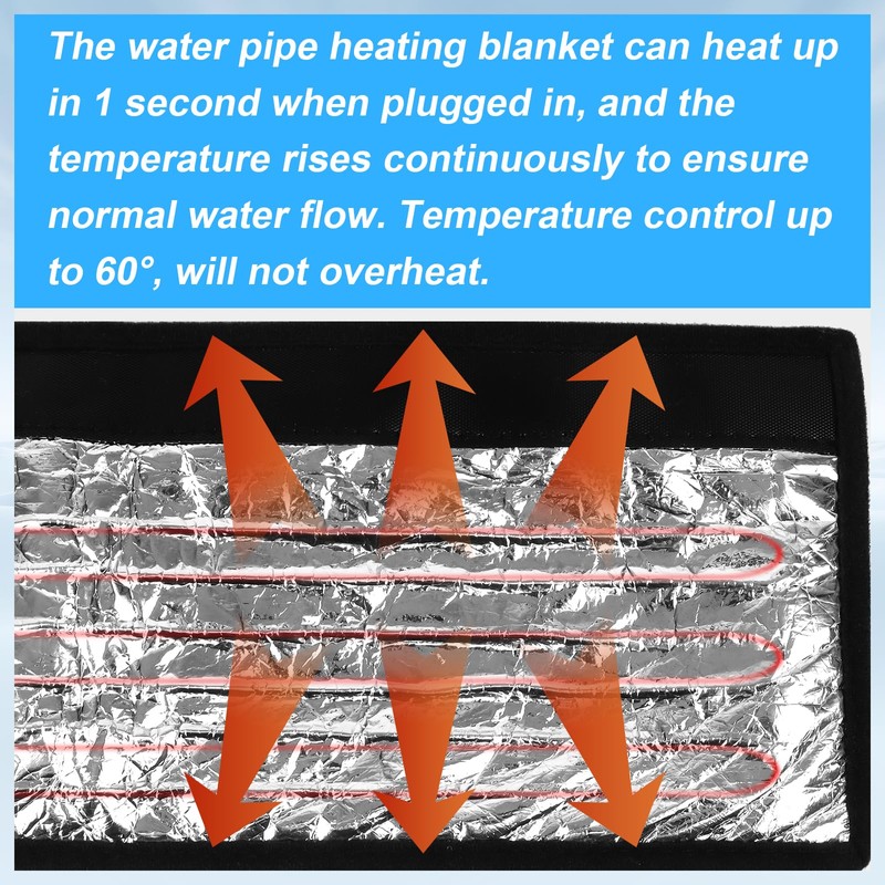 - Safety Design: The heating anti-freeze jacket for hose pipe Built-in heating wire, temperature control up to 60°, will not overheat, heat is not easy to lose, prevent freezing, minimize energy consumption; The outer layer of electric heating blanket is made of high temperature resistant waterproof and fireproof layer