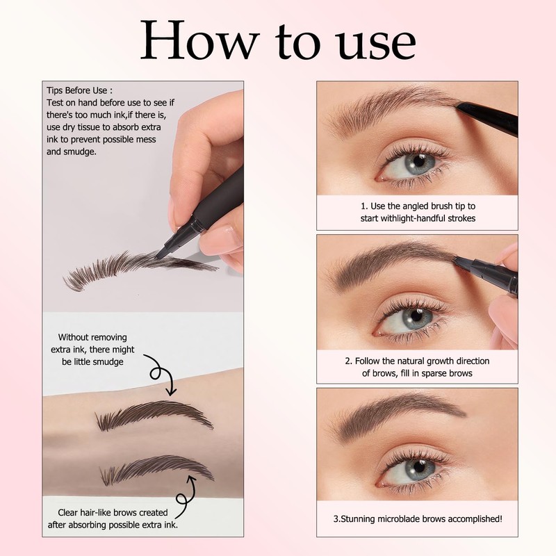 - Achieve Flawless Eyebrows: Our 2 Pack Waterproof Eyebrow Pen features a unique 4-fork tip design that mimics the natural look of microblading, allowing you to define and fill your eyebrows with precision.